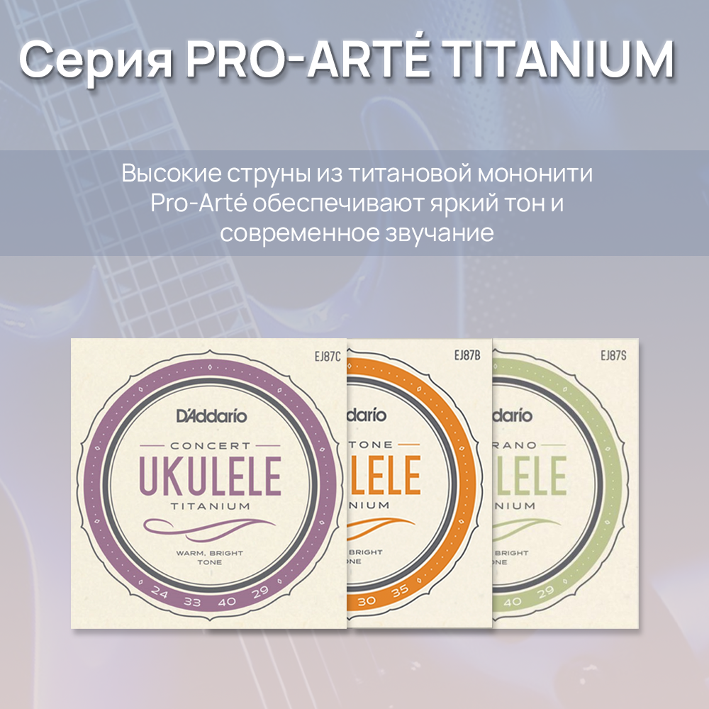 Струны Струны для укулеле D'Addario Ukulele Titanium Soprano EJ87S 28-40