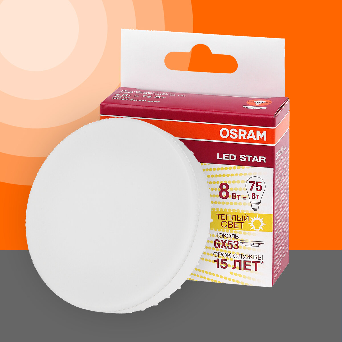 Лампочки Лампочка светодиодная OSRAM LED Star GX, 800лм, 8Вт, 2700К (теплый белый свет), цоколь GX53, колба GX, таблетка