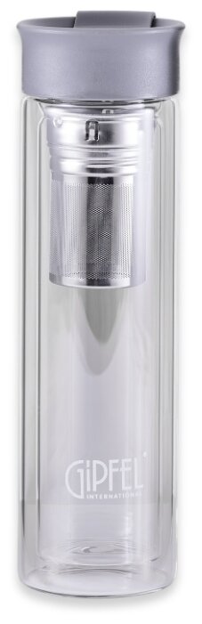 Лучшие цены. Бутылка для воды GIPFEL 8346 Martino 0,35 лБутылка для воды MARTINO 8346 GIPFEL 350мл с фильтром. Материал: боросиликатное стекло, нержавеющая сталь, пластик. Цвет крышки: серый. Высота бутылки 23 см. Магазины в вашем городе.
