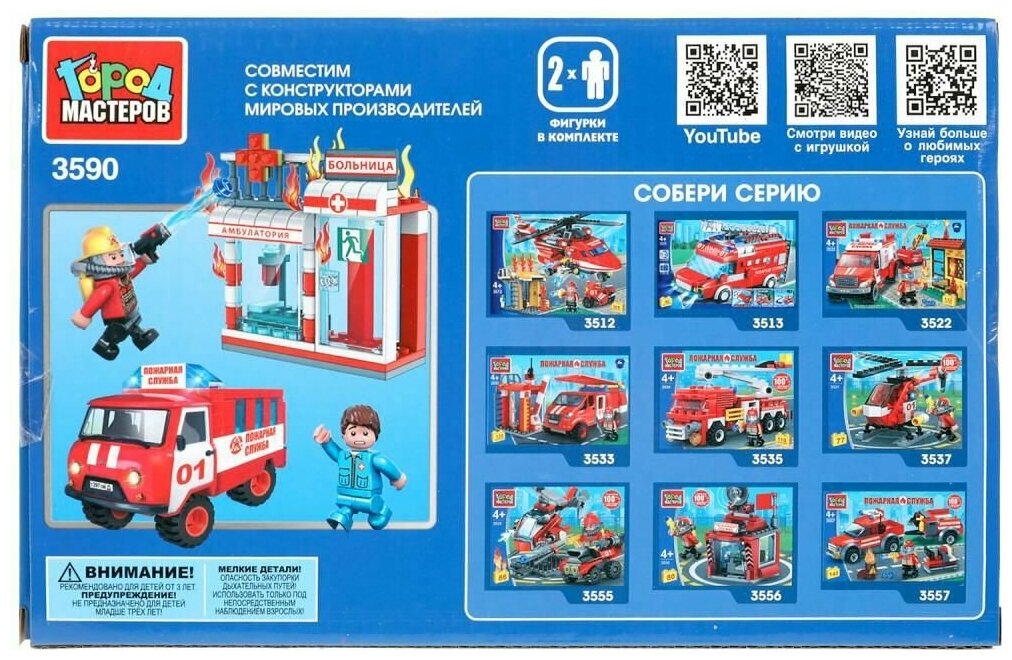 Лучшие цены. Конструктор «Уаз-452. Пожар в больнице» ТМ «Город мастеров» понравится маленьким спасателям. Особенности и комплектация: - 121 деталь - 2 фигурки - совместим с моделями конструкторов мировых брендов - все детали легко и плотно соединяются между собой С помощью этого занимательного конструктора ваш ребёнок может собрать реалистичную модель пожарной машины, декорации больницы и помочь храбрым сотрудникам пожарной службы остановить возгорание. Магазины в вашем городе.