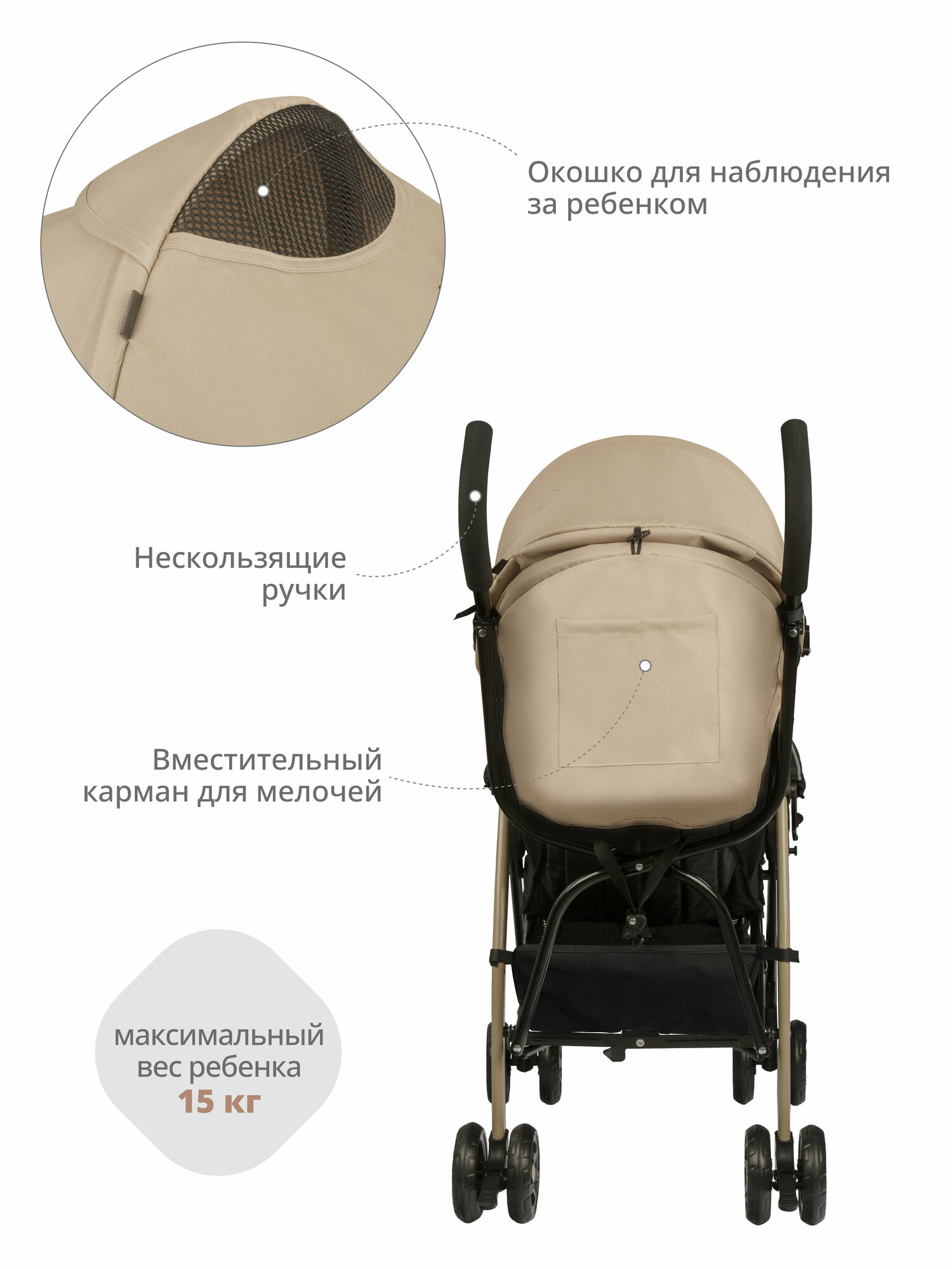 Коляска-трость Indigo Bono, бежевый Indigo 9627275 .