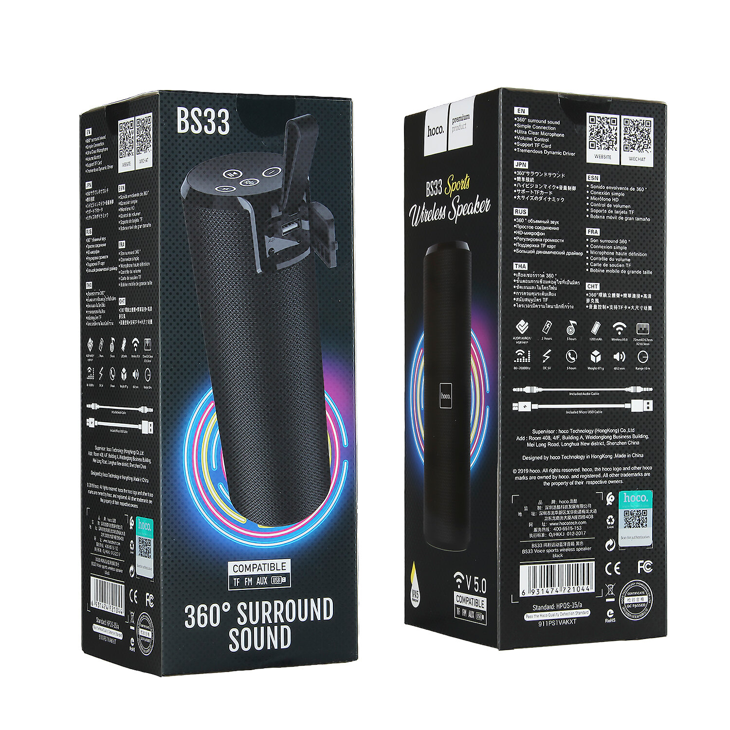 Колонка портативная HOCO BS33 Voice sports, Bluetooth, 1200 мАч, ,2*5Вт, FM, TF, AUX черный,