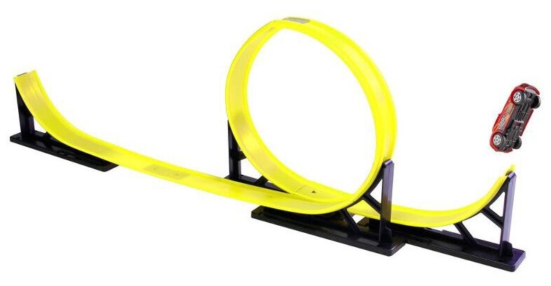 Лучшие цены. Трек «Турбо-прыжок» с мертвой петлей в комплекте с инерционной машинкой можно прикрепить к столу или шкафу, и он готов к игре. Машинку можно запускать вниз по дорожке, по двойной петле и над регулируемым мостом. Игрушка выполнена из прочного и безопасного пластика с элементами из металла. Магазины в вашем городе.