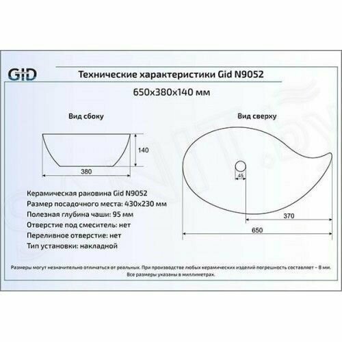 Gid Раковина накладная Gid N9052 8 250 ₽ Подробнее