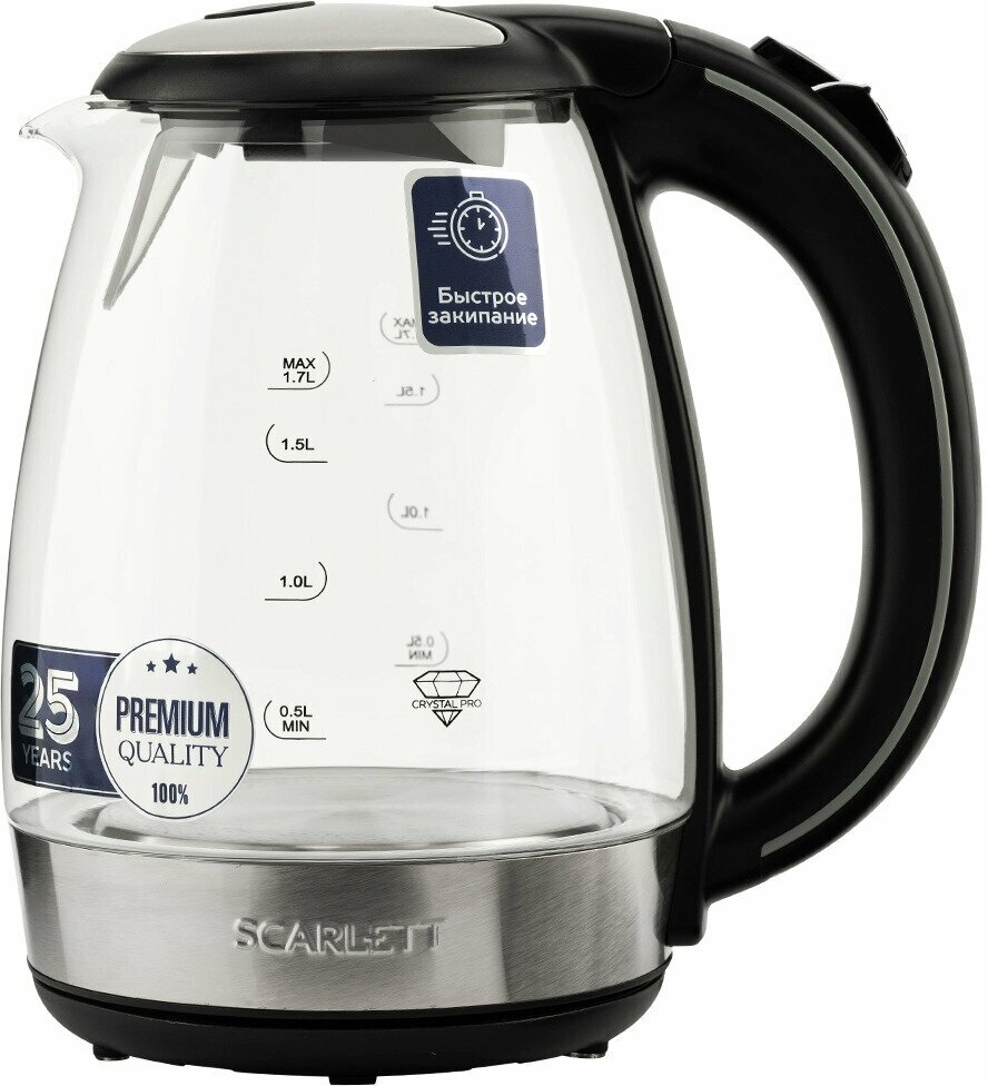 Электрочайник Scarlett SC - EK27G93 [термостойкое стекло, 1.7 л, 2200 Вт, фильтр, скрытый нагревател