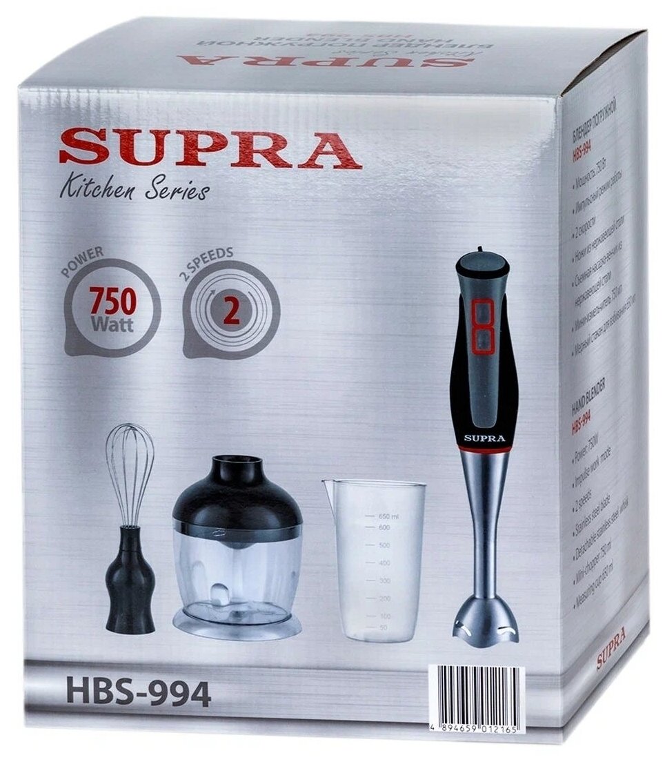 Лучшие цены. БрендSUPRAТиппогружнойМодельHBS-994PartNumber/Артикул ПроизводителяHBS-994ЦветчерныйМощность750Регулировка скорости вращенияДАКоличество скоростей/режимов2Материал погружной частинержавеющая стальМатериал ножейнержавеющая стальИзмельчитель в комплектеДАВенчик для взбиванияДАИмпульсный режимДАМерный стаканДАОсобенностимини-измельчитель 750 мл, мерный стакан для взбивания 650 млЭлектропитаниеот сетиМатериал корпусапластикСсылка на сайт поставщика/вендораhttps://www. supra. Магазины в вашем городе.