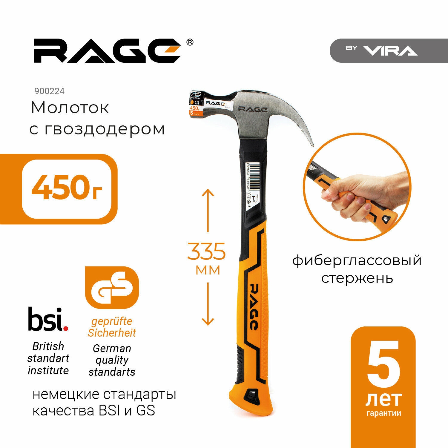 Молоток-гвоздодер Vira Rage 450г 900224 900224 .