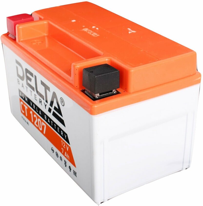 Мото, Скутер 12В 7 А.ч. Delta, 105А, Пр.пол., Ст1207 (Ytx7abs) (150X85x94) (Залитый) Agm Аккумулятор DELTA battery арт. CT1207
