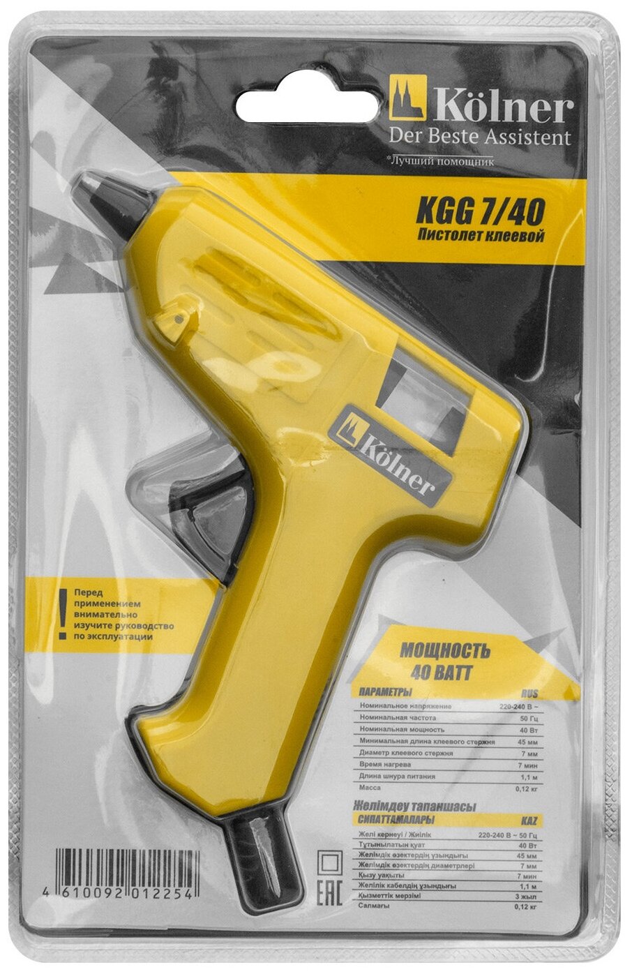 Клеевой пистолет Kolner KGG 7/40, желтый, черный, 2 стержня в комплекте