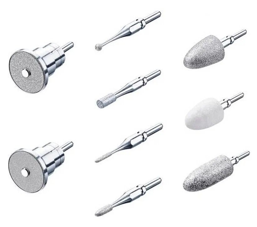 Лучшие цены. Оригинальный комплект насадок фрез для маникюрных наборов MP60, MP62, SMA50 9 - высококачественных насадок cсапфировым напылением Фетровый конус:сглаживание и полирование края ногтя после опиливания, а также чистка поверхности ногтя Мелкозернистый сапфировый диск:опиливает и обрабатывает ногти Крупнозернистый сапфировый диск:с помощью этой насадки Вы можете укорачивать даже толстые ногти Фреза:с помощью этого инструмента Вы можете высвобождать вросшие ногти и удалять отмершие частички ногтей Факела-образная. Магазины в вашем городе.