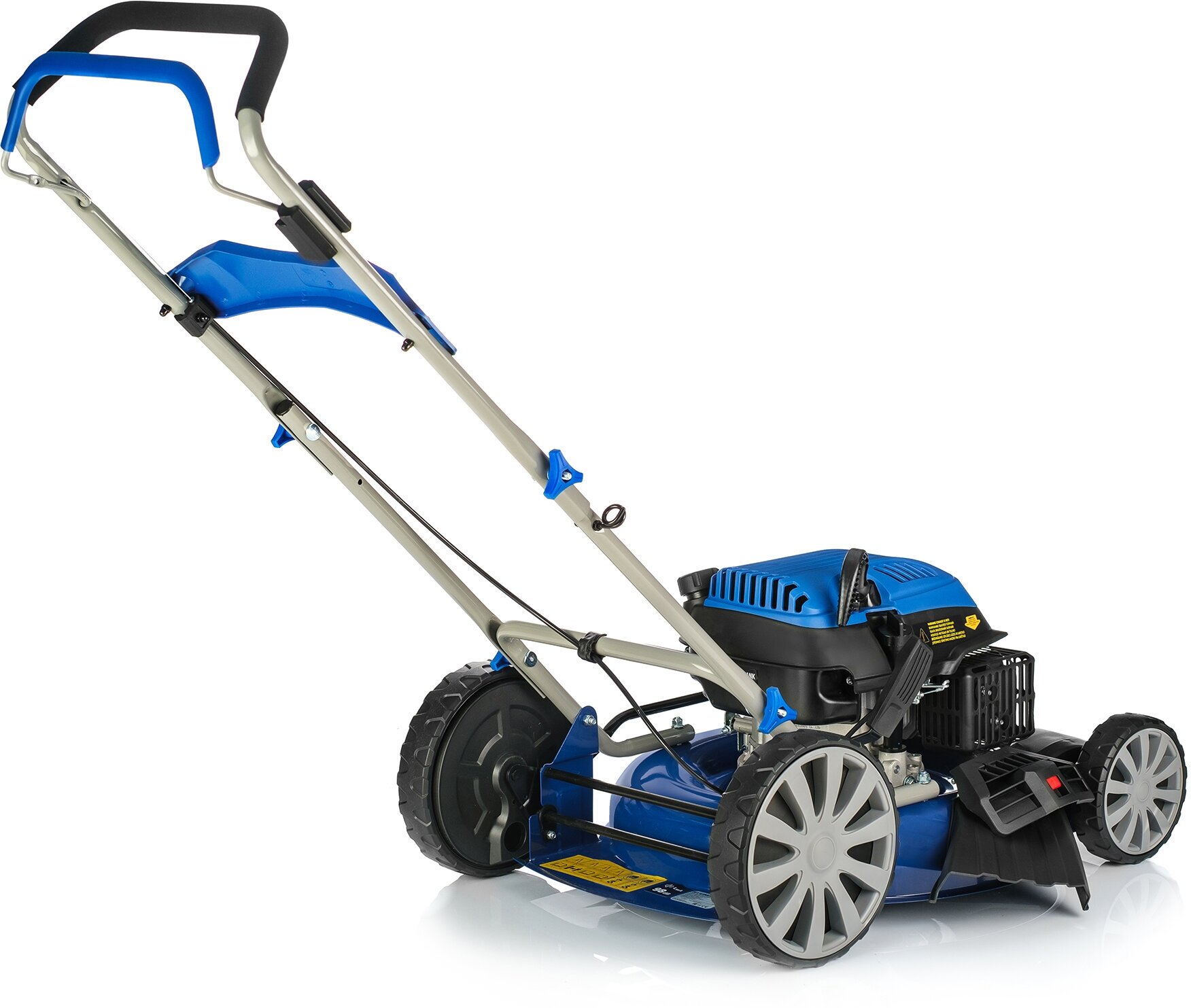 Лучшие цены. Газонокосилка бензиновая Hyundai L 5100М - бензиновая несамоходная модель без травосборника с боковым выбросом. Косилка оборудована четырёхтактным бензиновым мотором мощностью 3,5 лошадиные силы. Двигатель имеет верхнее расположение клапанов (OHV) и чугунную гильзу цилиндра. Так же на моторе предусмотрен праймер подкачки топлива в карбюратор, позволяющий запускать мотор одним рывком кикстартера. Объем двигателя 139 куб. см, позволяет ему вращать нож диаметром в пол метра. Магазины в вашем городе.