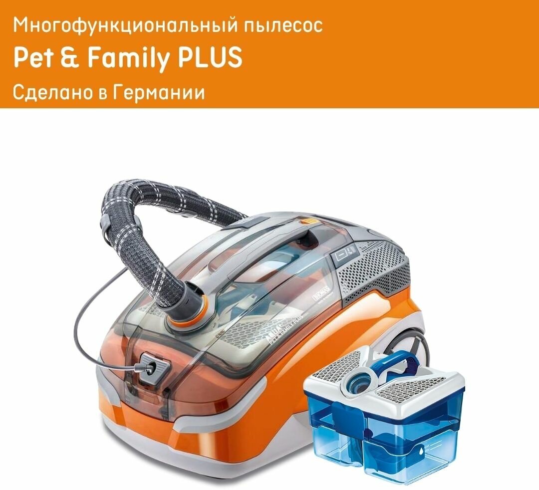 Лучшие цены. THOMAS Pet&Family PLUS – моющий пылесос c фильтрацией AQUA-BOX и с расширенным комплектом насадок для семей с домашними животными. В режиме влажной уборки Pet&Family PLUS эффективно чистит ковровые покрытия и мягкую мебель и уничтожает различные пятна, которые часто появляются там, где есть домашние питомцы. Также Pet&Family PLUS тщательно моет твердые напольные покрытия, не оставляя капель и разводов. Пылесос не только моет, но и просушивает поверхность. Магазины в вашем городе.