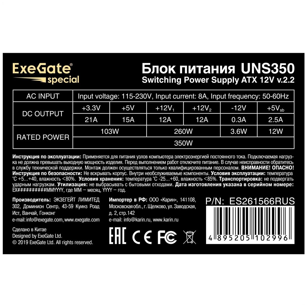 Блок питания 350W Exegate Special UNS350 ATX Es261566rus .