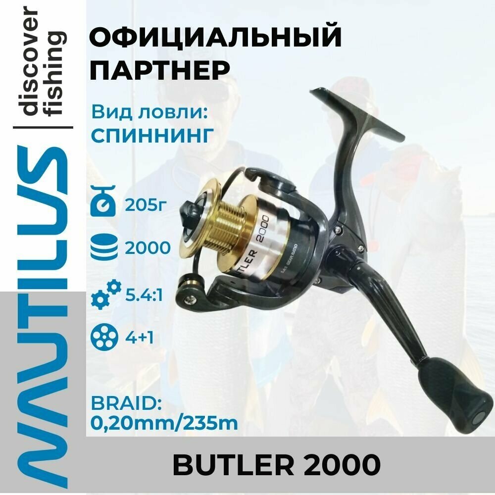 Лучшие цены. Катушка Nautilus Butler NB 2000, 4+1 подшипник, 5.4:1 Катушки BUTLER представлены широкой размерной линейкой, от 500 до 4000 размера. Могут применяться во многих видах рыбной ловли. Обладают высокопрочным корпусом, алюминиевой шпулей, системой Anti-Reverse, и плавным ходом. Для предотвращения повреждения лески или плетеного шнура ролики лесоукладывателя у всех моделей покрыты нитридом титана. Особенности: Высокопрочный корпус. Перекрестная намотка лески CROSS-W. Алюминиевая шпуля. Магазины в вашем городе.