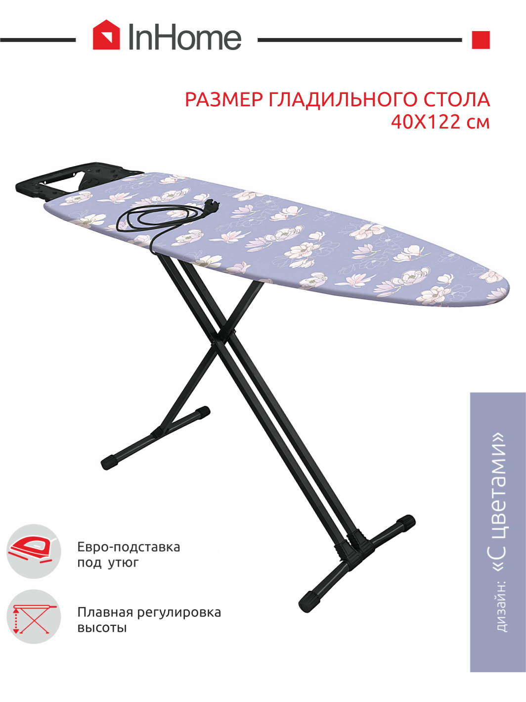 Гладильная доска металлическая с розеткой InHome IN10M/5