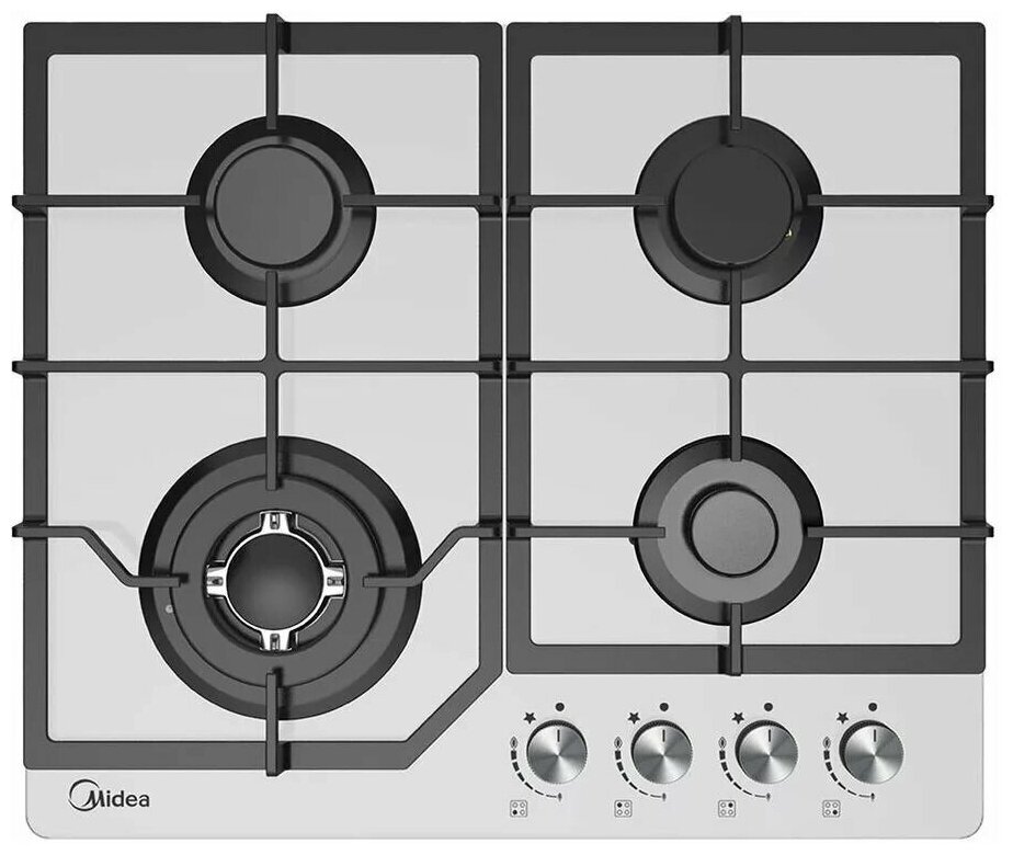 Варочная поверхность Midea MG643TGW, газовая, 4 конфорки, белая