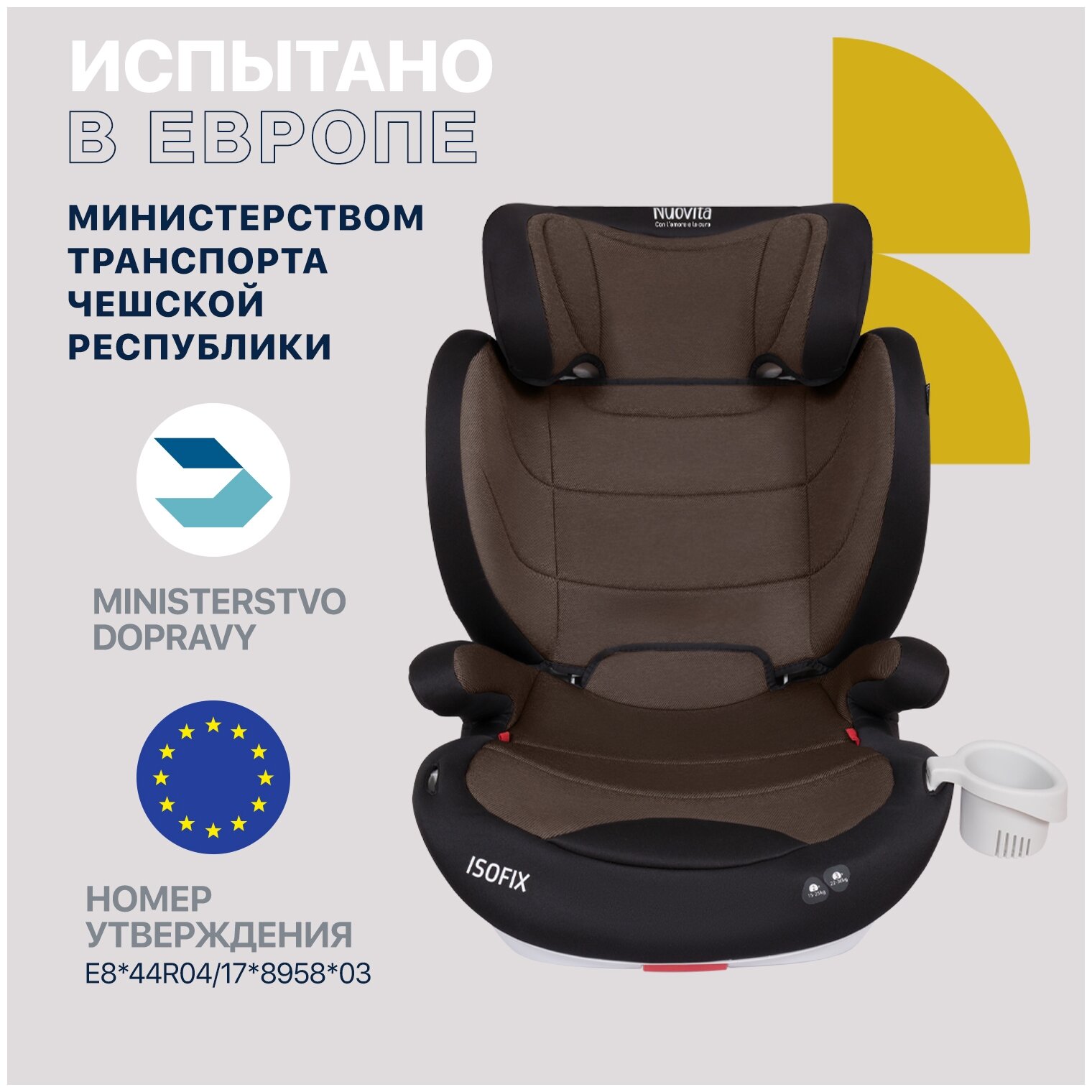 Автокресло детское с креплением Isofix Nuovita Maczione N23i-1, группа 2/3 от 3,5 до12 лет, весом от 15 до 36 кг (Caffe/Кофейный)