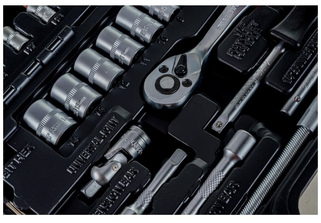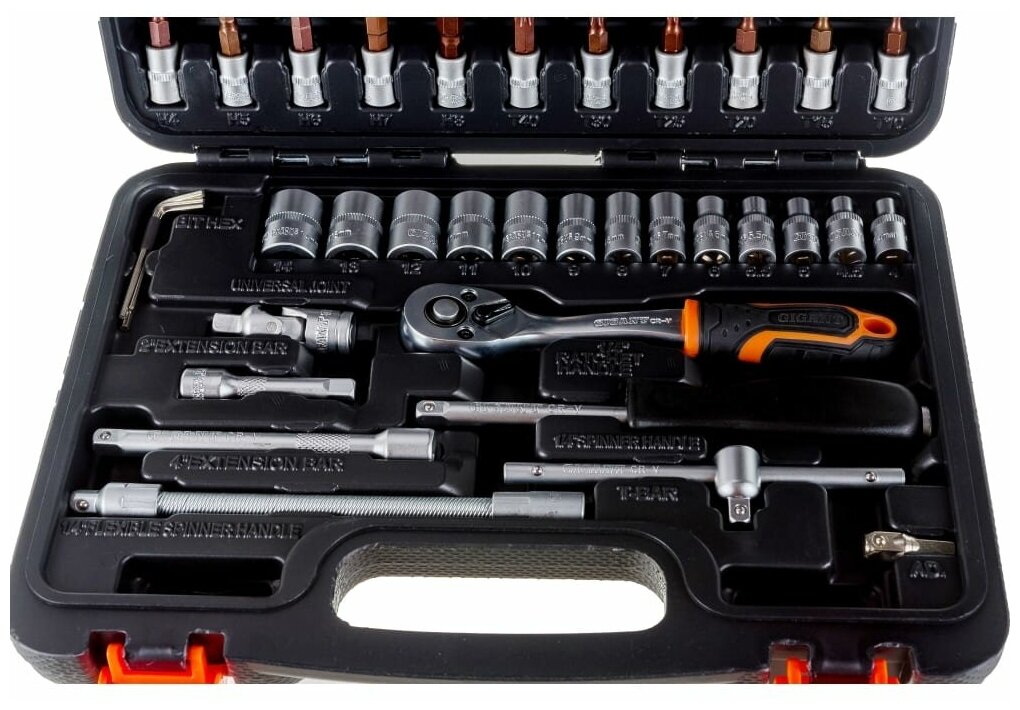 Лучшие цены. Набор торцевых головок и бит 46 предметов Gigant GAS 46 применяется при выполнении разнообразных слесарных, монтажных и ремонтных работ. Набор позволяет легко и быстро устанавливать крепежные элементы. Торцевые головки позволяют выполнять работы с шестигранными деталями. Они представлены в различных размерах и помогают справиться с большим кругом задач. Обеспечивают максимальный крутящий момент по отношению к резьбе и выдерживают интенсивные нагрузки. Магазины в вашем городе.