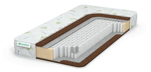 Лучшие цены. Матрас Everest Хард кокос 2 S-1000 - это матрас на независимом пружинном блоке. Комфортный слой представлен кокосовой койрой. Это натуральный наполнитель, который создан из волокон ореха кокосовой пальмы и пропитан составом из натурального латекса. В составе матраса придаёт необходимый уровень жёсткости и оказывает требуемую поддержку позвоночнику. Прочная и долговечная, кокосовая койра хорошо пропускает воздух и обладает антибактериальным эффектом. Магазины в вашем городе.