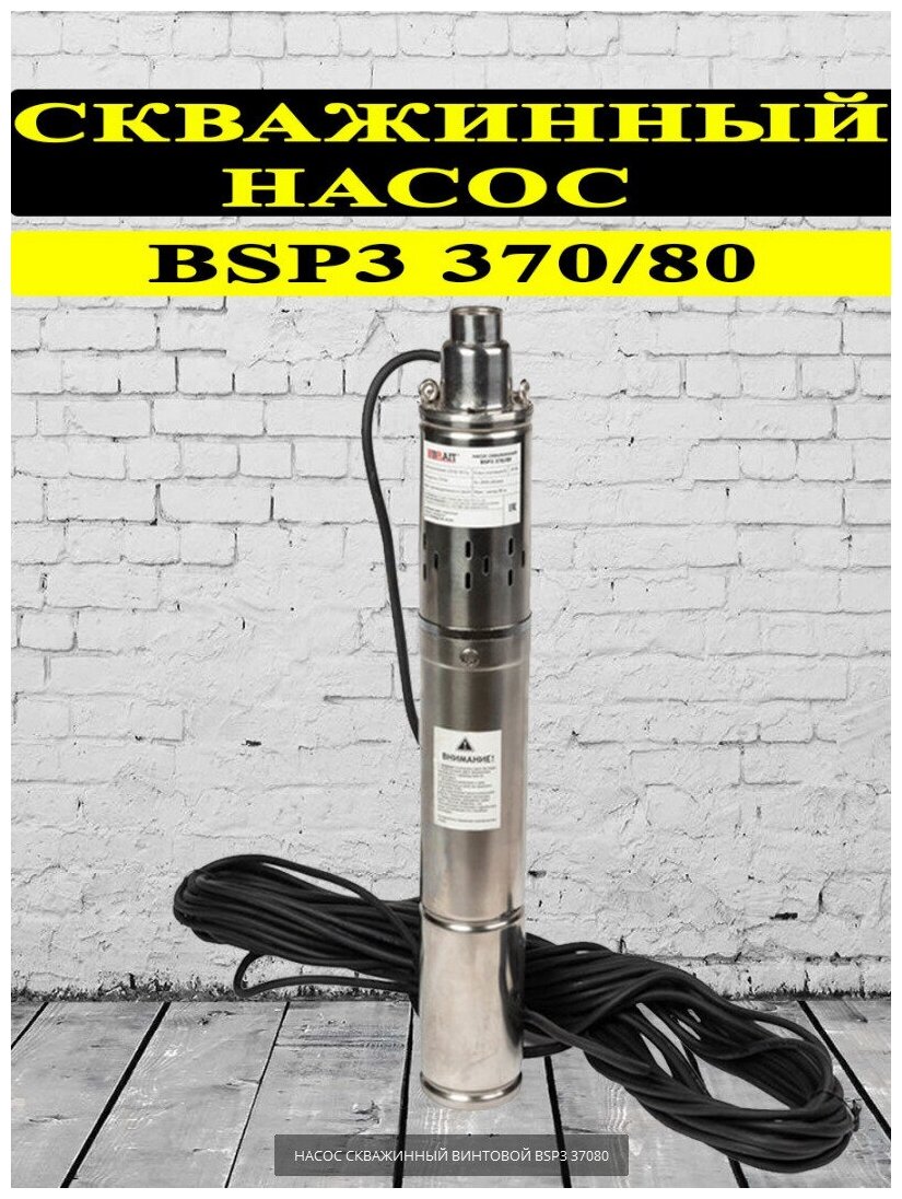 Насос скважинный BRAIT BSP3 370/80 (370Вт, 2850л/час, макс. напор 80м, кабель 20м)