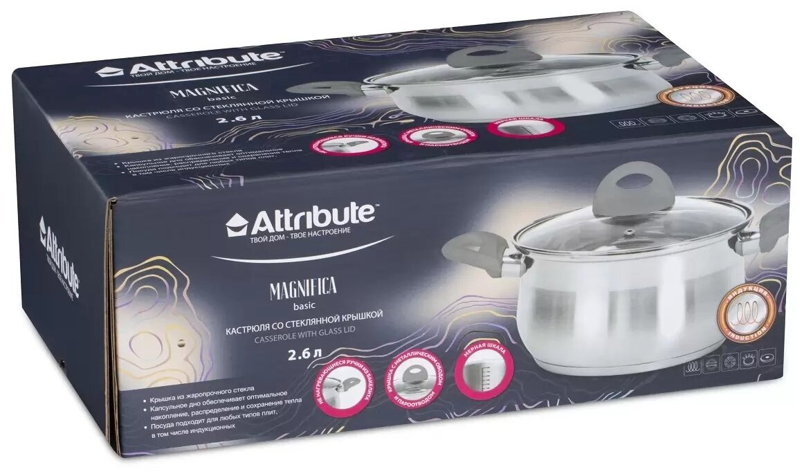 Кастрюли Кастрюля 2.6 л аттрибут магнифика бэзис с крышкой asm003