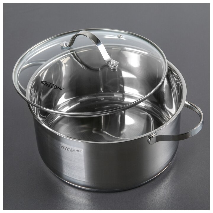 Кастрюля нержавеющая сталь "Альта" 5,2 литр диаметр 24 см стеклитр кр ручки нержавеющая сталь КТ-SЕТ-005-52 (Катунь)