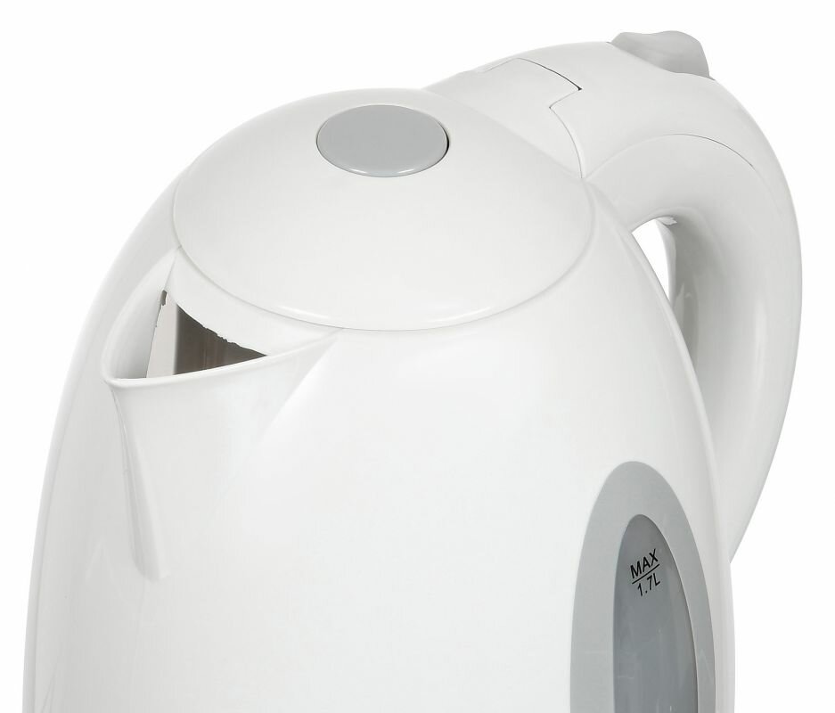 Лучшие цены. Классический дизайн модели электрического чайника STARWIND SKP2211 идеально впишется в интерьер любой кухни. Корпус выполнен из пластика белого цвета с элементами декора в сером цвете. По центру расположено окошко, через которое наглядно видно количество воды, а также нанесена мерная шкала. Кнопка включения, как и во многих моделях, расположена на ручке в верхней части. Магазины в вашем городе.