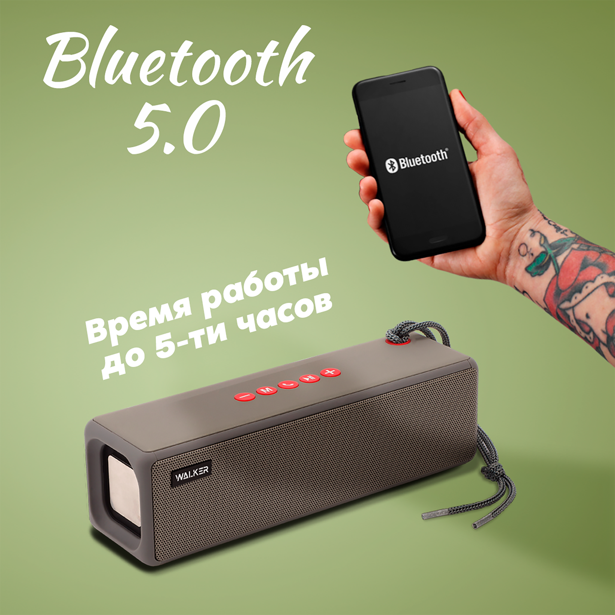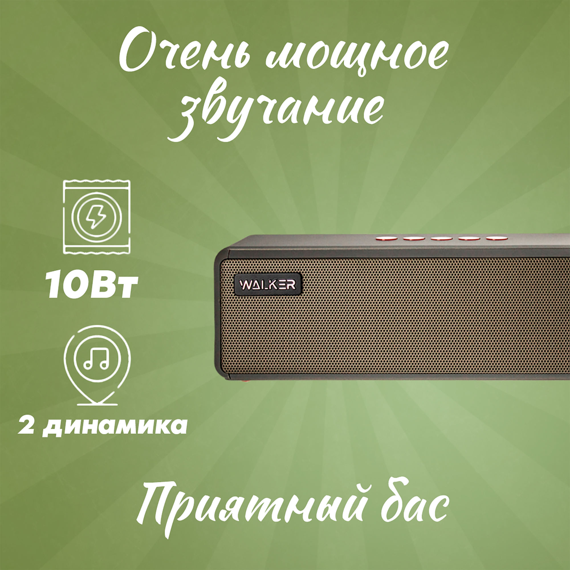 Портативная колонка bluetooth 5.0, WALKER WSP-130, 2 динамика по 5Вт, блютуз, с подсветкой беспроводная, колонка музыкальная как jbl акустика, зеленая 1 789 ₽ Подробнее