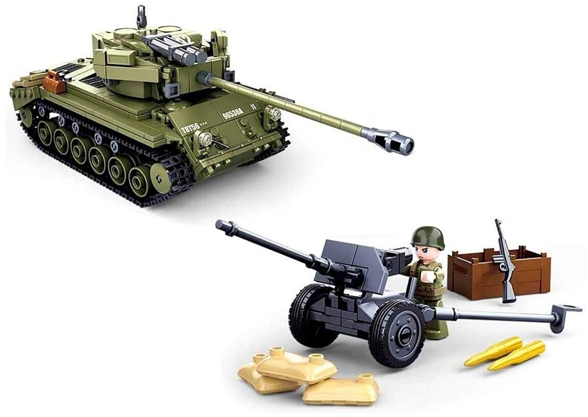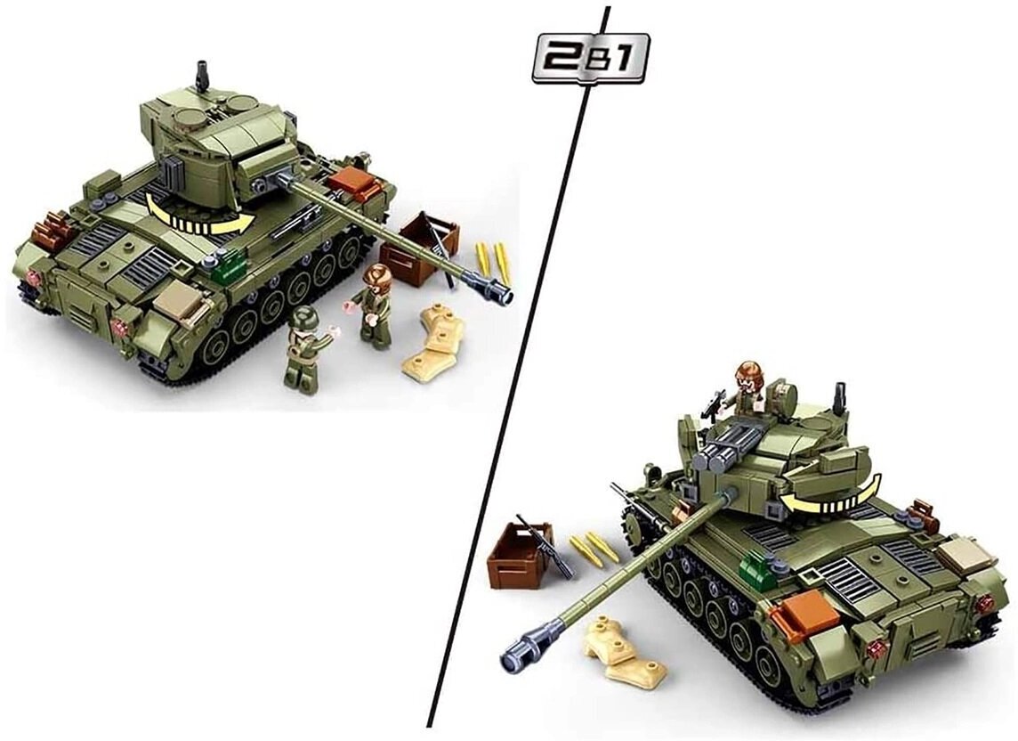 Конструктор SLUBAN WW2 M38-B0860 Боевой танк, 742 дет. (два варианта сборки)