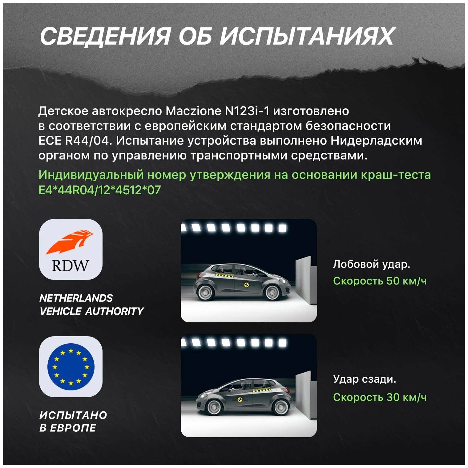 | Регулировки | наклона спинки , высоты подголовника , высоты ремней (4 положения) |