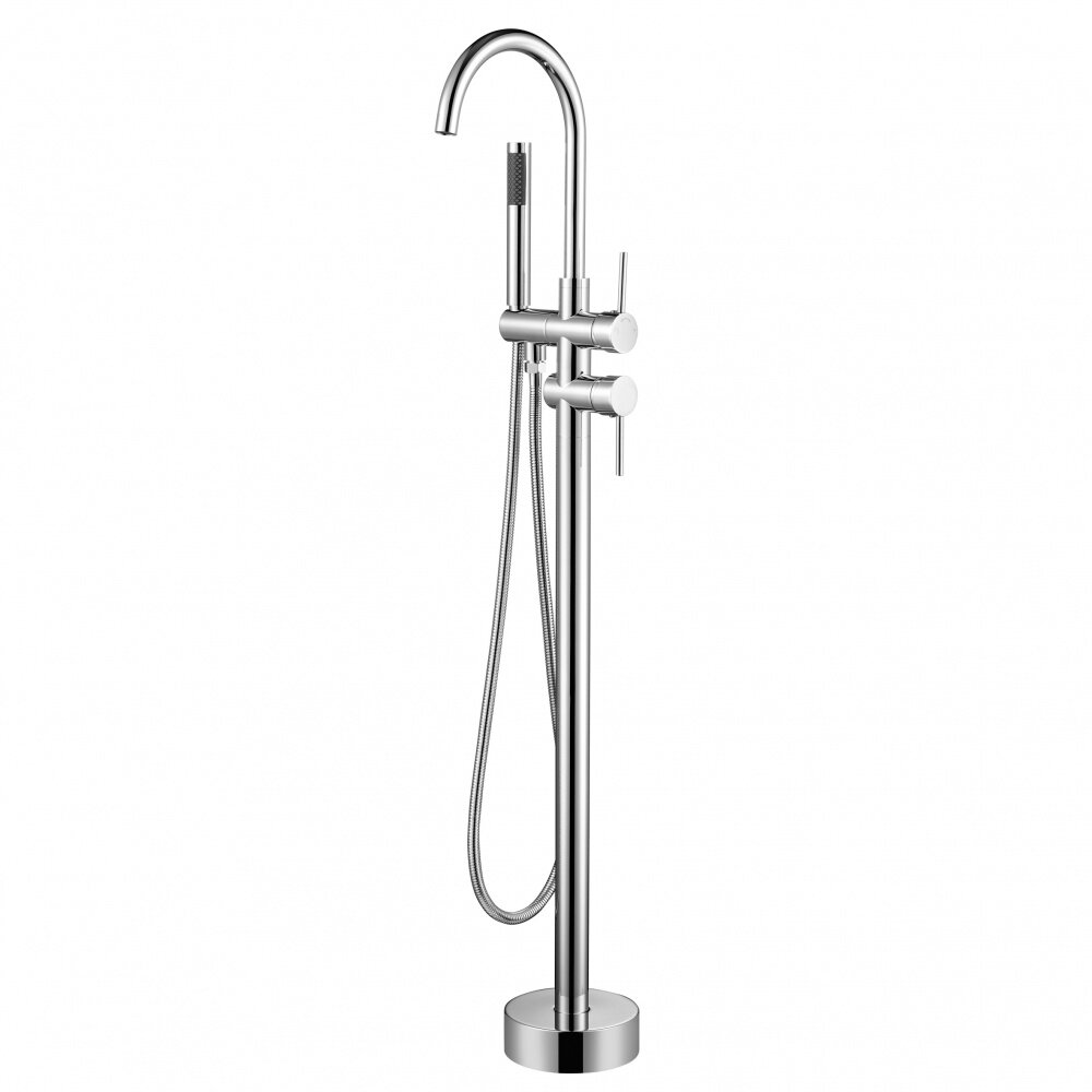 Лучшие цены. для ванны, цвет: хром, на пол, длина излива: 202 мм, двухзахватный, высота: 1034 мм, 1, 1/2 дюйма, латунь, современный, округлая, гибкая, керамический, вытяжной излив: %value%, лейка со шлангом, аэратор. Магазины в вашем городе.