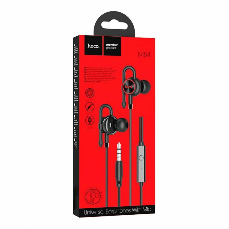 Наушники Hoco M84, проводные, вакуумные, микрофон, 1.2 м, чёрные