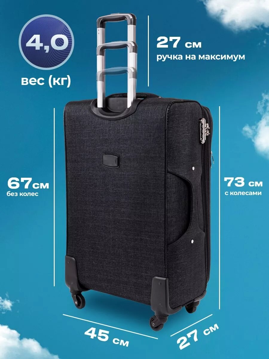 Тканевый чемодан на 4-х колесах / Багаж / Большой L / 106 Л / Прочный и непромокаемый / Тканевый