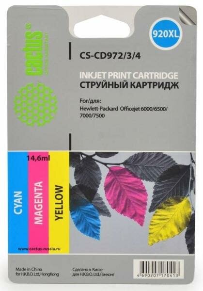 Картриджи Комплект картриджей Cactus СS-CD972/3/4 №920XL СS-CD972/3/4 для HP Officejet 6000/6500/7000/7500 цветной