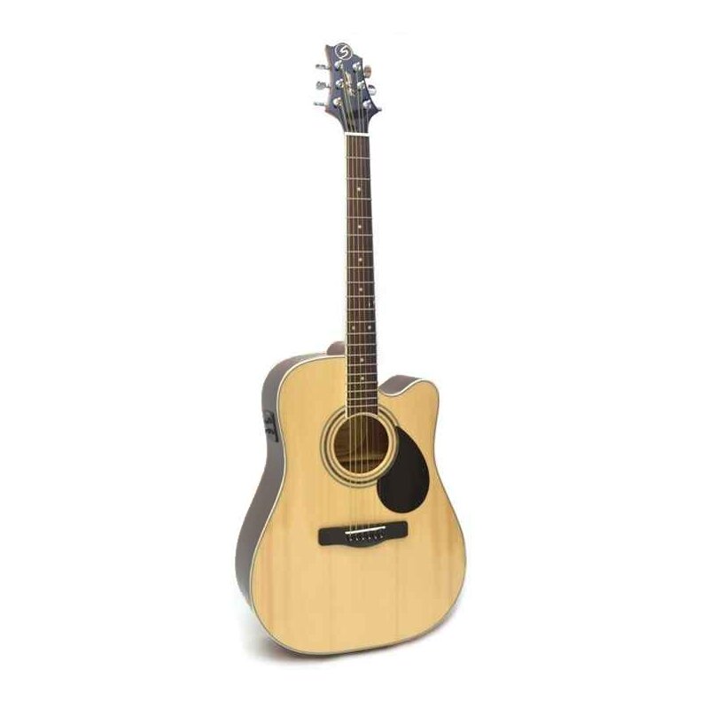 Лучшие цены. Greg Bennett GD101SCE/N - 6-струнная электроакустическая гитара натурального цвета в корпусе «дредноут» с вырезом (катвей). Комбинация ели верхней деки с красным деревом в нижней части корпуса дает четкий звук с гармоничным сочетанием высоких и низких частот. На этом инструменте можно играть пальцами и медиатором. Как любой дредноут, такая гитара идеальна для аккомпанемента. Отделка глянцевая. Белый кант обечайки, оригинальный дизайн розетки. Магазины в вашем городе.