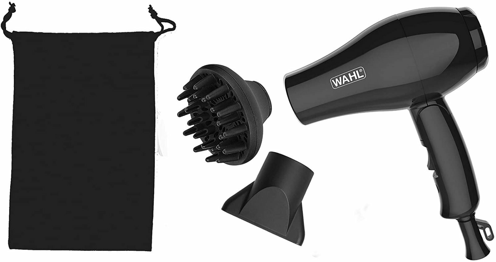 Фен для волос Wahl 3402-0470, дорожный, черный, компактный, 1000 Вт, 2 скорости, диффузор и концентратор, со складной ручкой