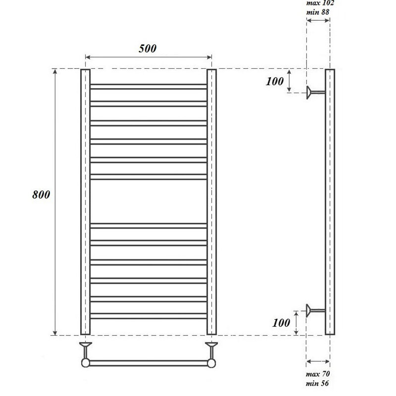 Водяной полотенцесушитель POINT PN10158S П12 500x800, с креплением, хром
