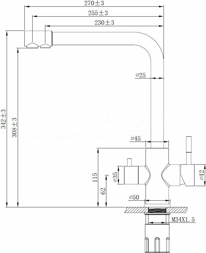 Смеситель для кухни esko r-излив с подключением к фильтру k24