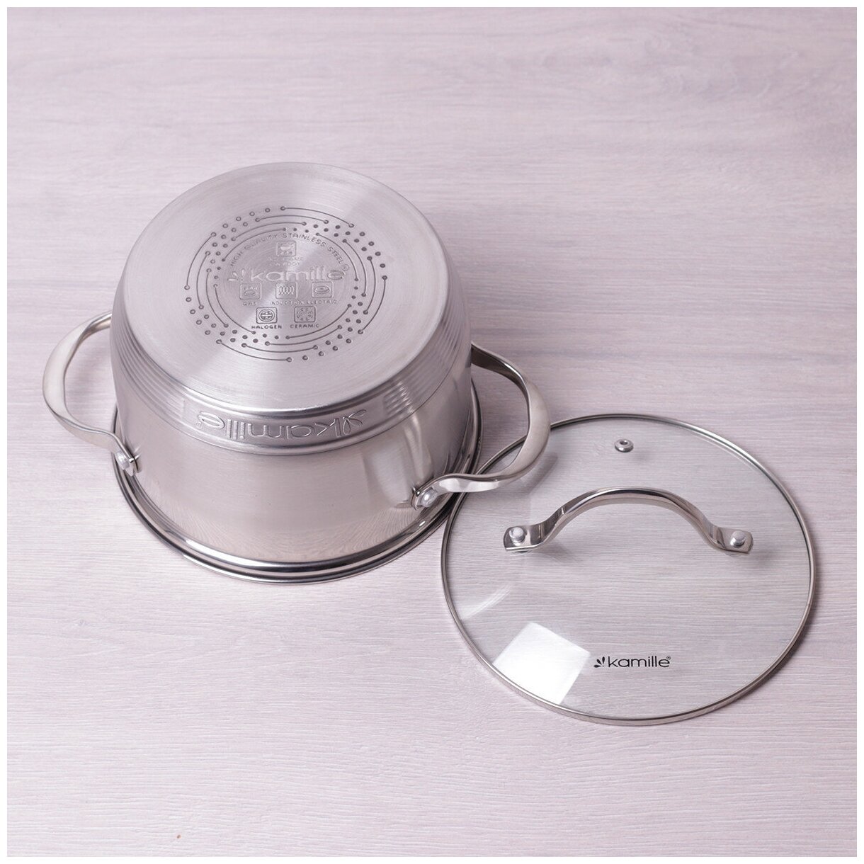 Кастрюля 2.1л из нержавеющей стали с крышкой и 7-слойным дном KAMILLE.