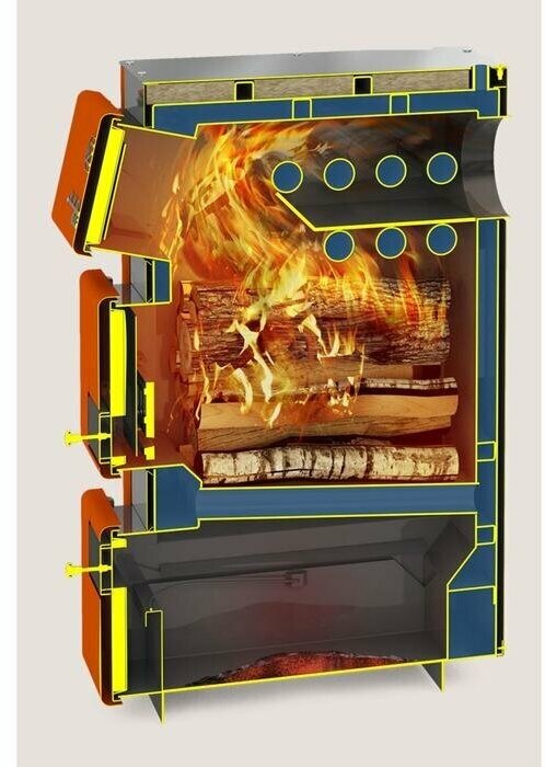 Лучшие цены. В комплект поставки котла уже входят аксессуары для прочистки, шибер и капиллярный термометр. Элементы дымохода, регулятор тяги, блок ТЭН и пульт управления к нему не входят в комплект котла и при необходимости приобретаются отдельно. Конструкция котла «Куппер про» предусматривает возможность их установки. Объем топливного бункера составляет 51 литр, а в удлиненную топку легко умещаются дрова длиной до 495 мм. Магазины в вашем городе.