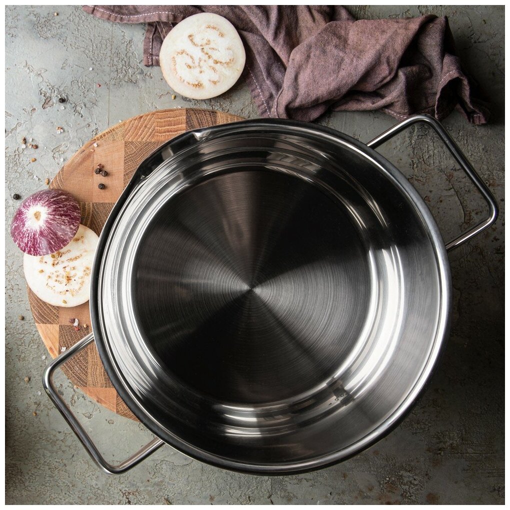 Лучшие цены. Серия: GERDA Материал: Нержавеющая сталь 18/10, алюминий. Материал ручки: Нержавеющая сталь 18/10 Крышка: Нержавеющая сталь 18/10, стекло, силикон Диаметр: 20 см Объем: 3,2 л Диаметр дна: 18 см Толщина стенок: 0,6 мм Толщина дна: 5,1 мм Можно мыть в посудомоечной машине. Посуда серии Gérda изготовлена из высококачественной нержавеющей стали 18/10. Прочное трёхслойное капсульное дно способствует равномерному распределению тепла. Магазины в вашем городе.