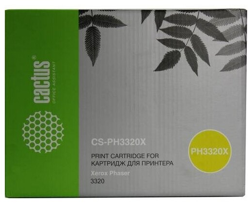 Лучшие цены. Картриджи CACTUS — это оптимальное соотношение цены-качества, надежность, сервис и гарантия компании. Отпечатки, сделанные с помощью картриджей CACTUS, обеспечивают качественную, надежную печать и отличную цветопередачу. Совместимый картридж для лазерных принтеров Xerox Phaser 3320 / 3320DNI. Компания CACTUS гарантирует стабильную работу всей своей продукции в течение 12 месяцев с момента приобретения при соблюдении условий эксплуатации. Магазины в вашем городе.