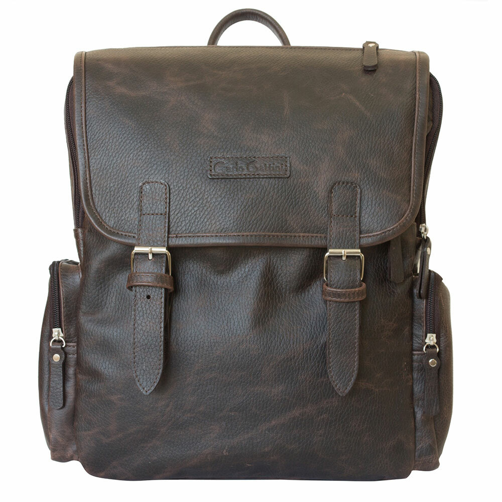 Лучшие цены. Кожаный рюкзак для ноутбука Santerno (Сантерно) Рюкзак имеет два основных и независимых отделения на молнии под общим клапаном. Прорезные карманы на молнии на клапане и под клапаном. Два накладных кармана по бокам. Отделение, которое находится ближе к спине сделано специально для ноутбука. Внутри него есть отделение для небольшого устройства (около 10 дюймов), а ноутбук побольше (до 15 дюймов) кладется рядом. Лямки специально упрочнены и имеют ширину 6 см. Магазины в вашем городе.
