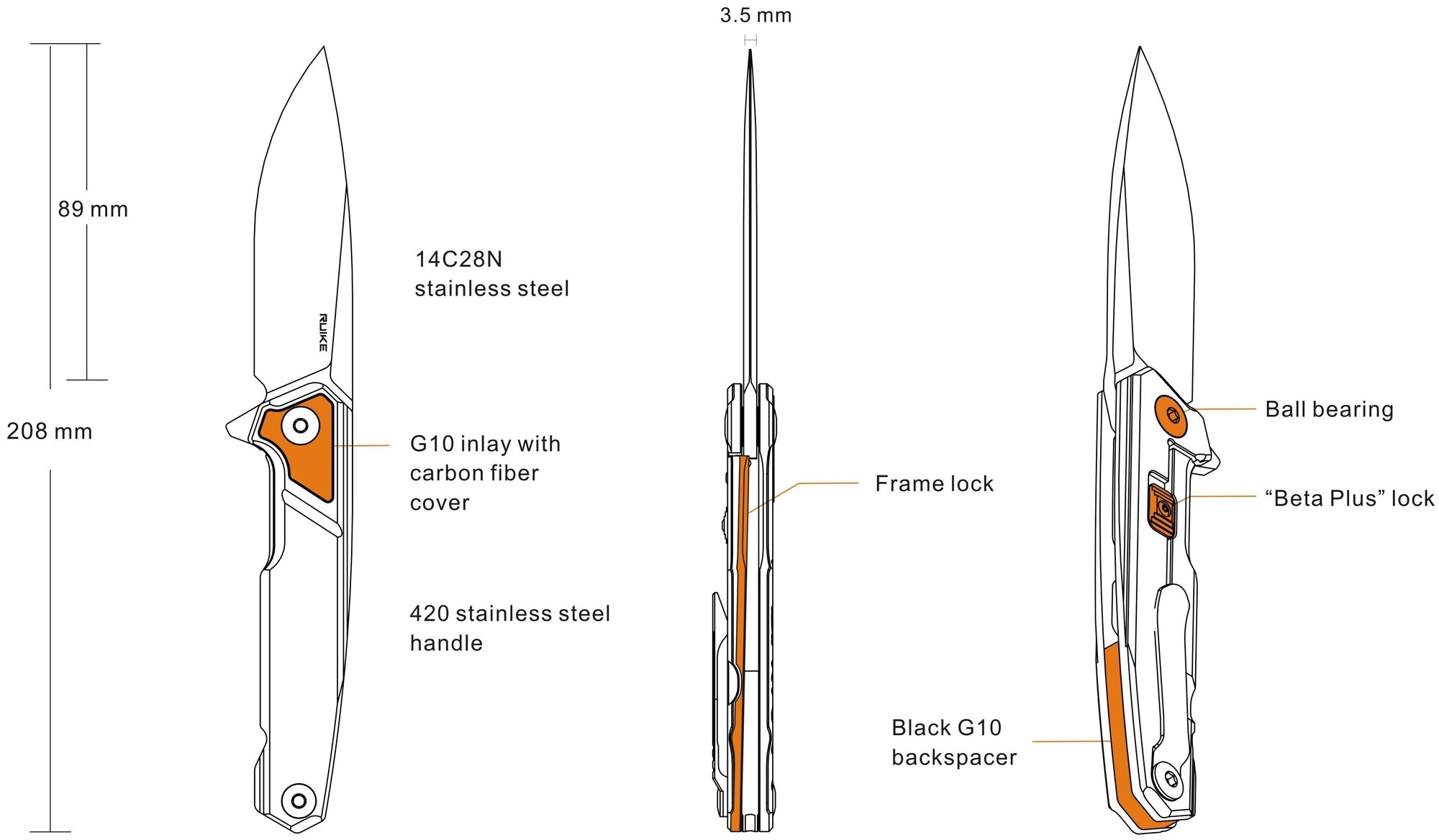 | Дополнительно | блокировка лезвия / открытие одной рукой / подпальцевая выемка / крепление для ремешка |