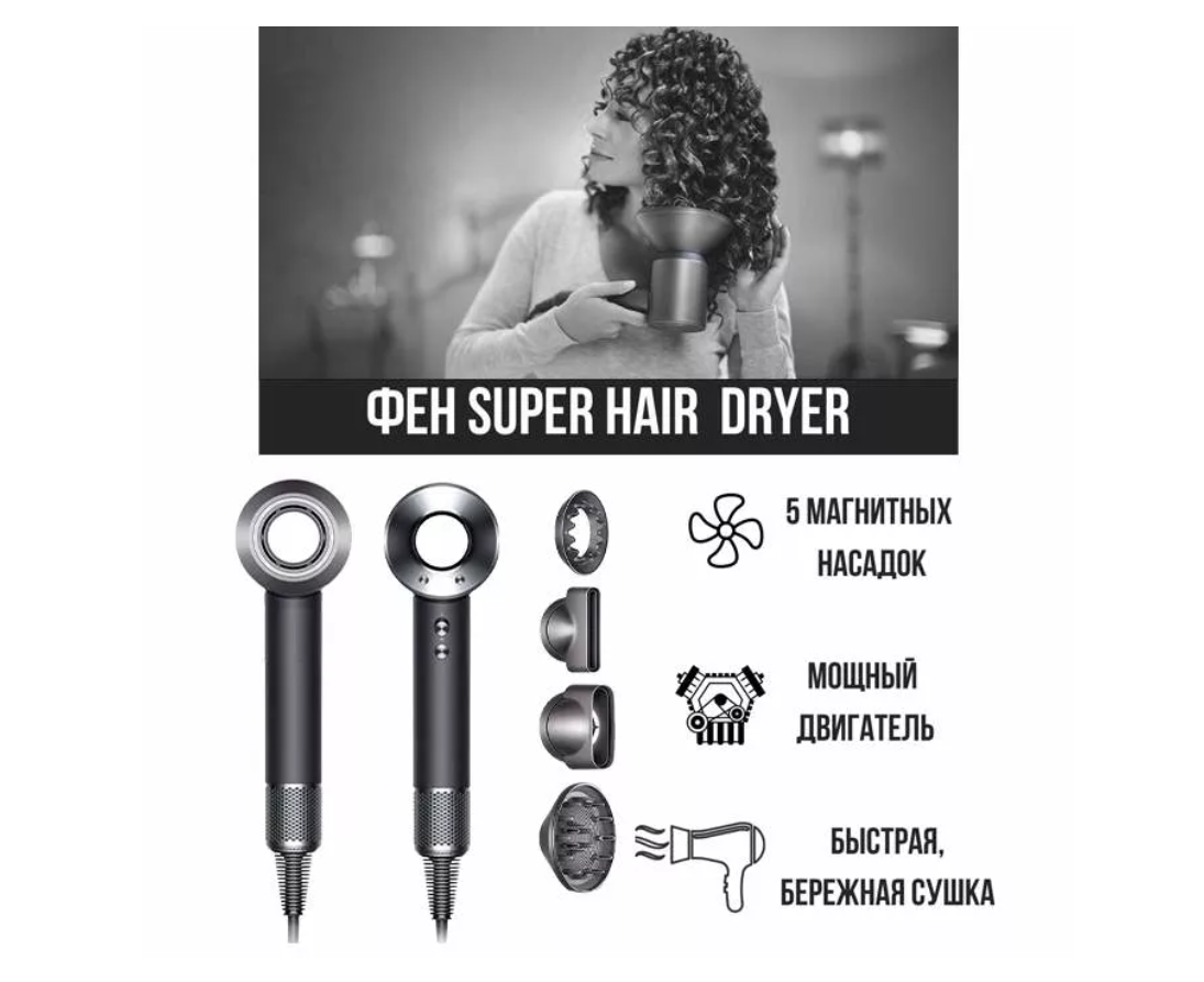 Профессиональный фен для волос Hair-1600 Super Hair Dryer 1600 Вт, 3 режима, 5 магнитных насадок, ионизация воздуха, розовый 2 500 ₽ Подробнее