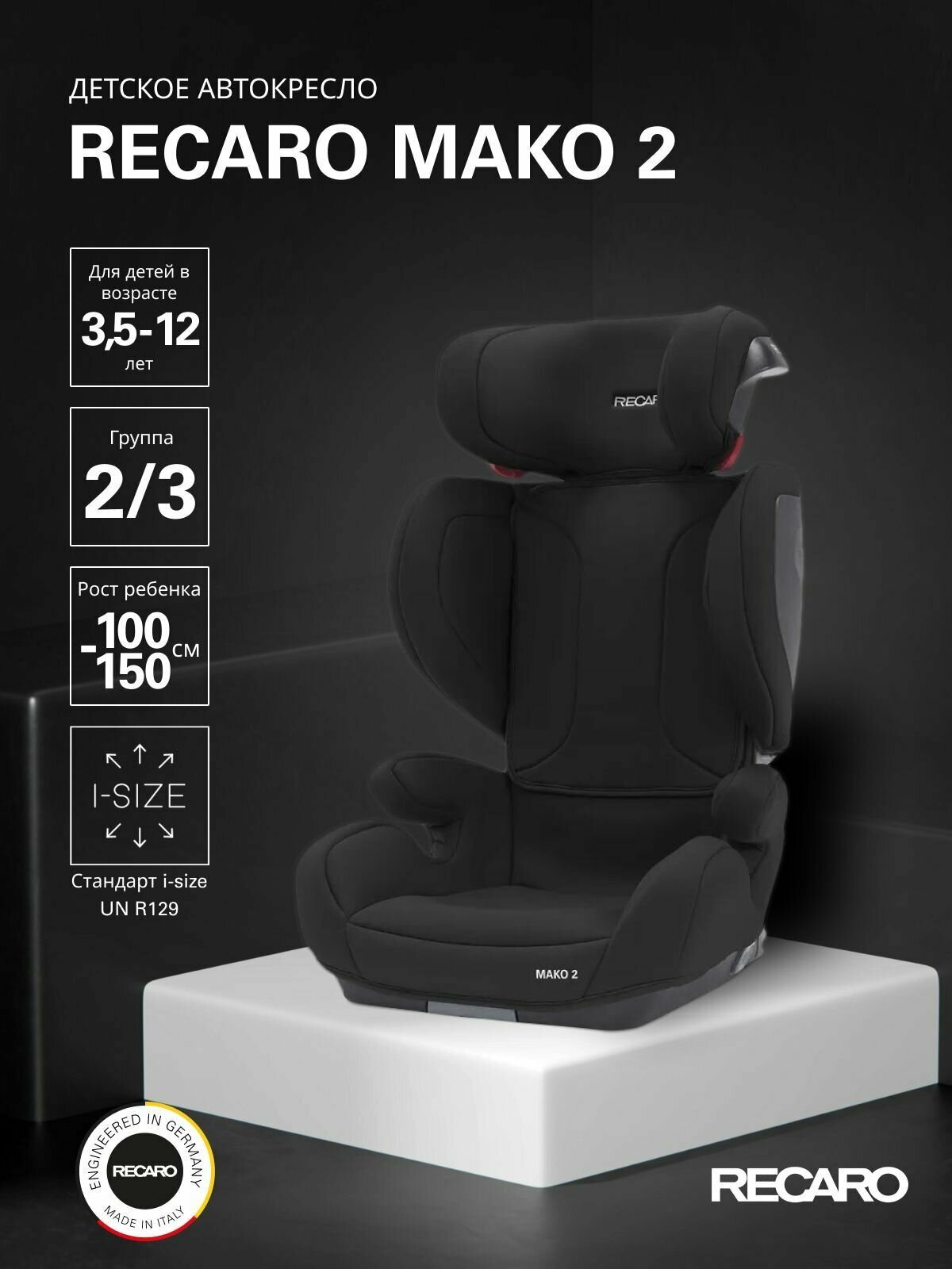 Детское автокресло Recaro Mako Core 2, группа 2-3 (от 15 до 36 кг), цвет Deep Black