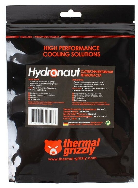 Термопаста Thermal Grizzly Hydronaut (7,8 г/3 ml) (tg-h-030-r) Tg-h-030-r .