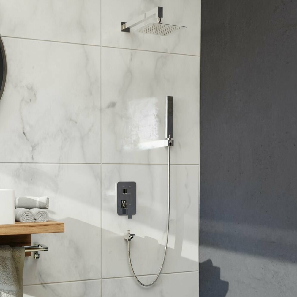 | Комплектация | ручной душ (душевая лейка) / верхний душ (тропический) / смеситель / излив / душевой шланг / крепление ручного душа / настенный кронштейн |