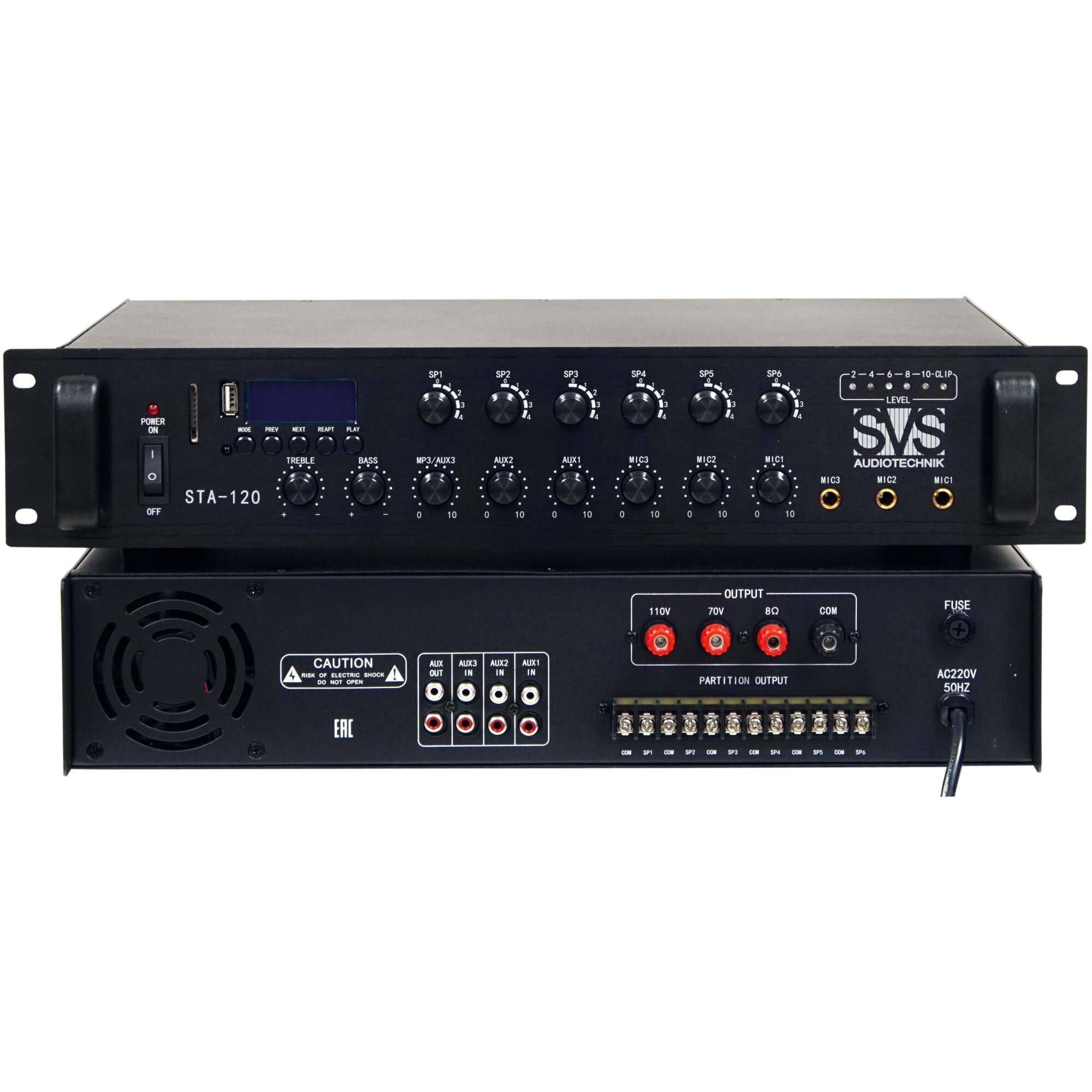 SVS Audiotechnik STA-120 Радиоузел 6 зон, 70/100 В (4, 8, 16 Ом), усилитель мощности 120 Вт