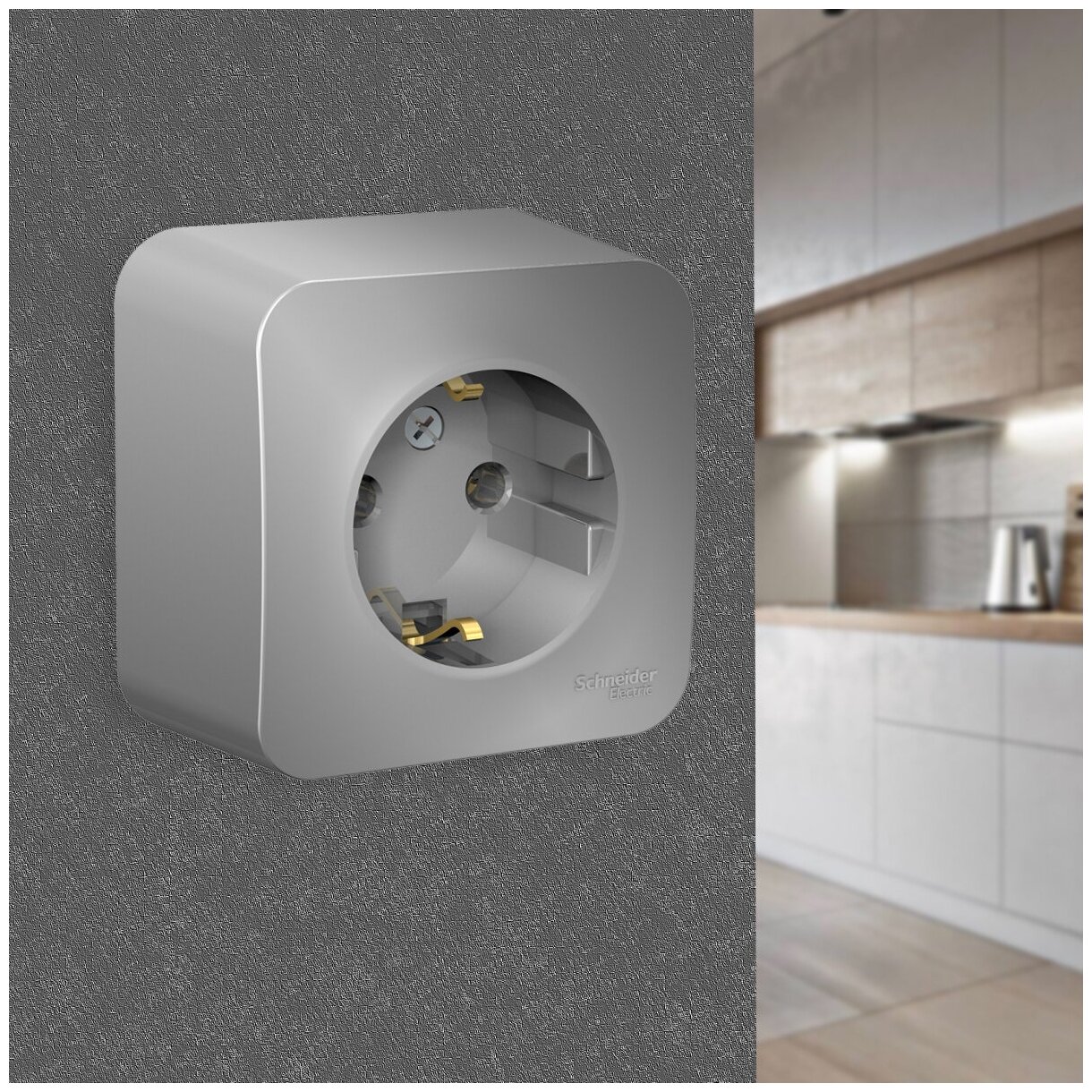 Розетка Schneider Electric Blanca BLNRA010113 открытая установка алюминий с заземлением IP20